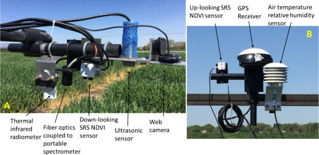 Apogee Instruments 的 SI-131 紅外輻射計(參考文獻中稱為熱紅外輻射計,TIR)被選為大豆和小麥育種多傳感器高通量田間表型分析系統的一部分。紅外輻射計用于收集冠層溫度,這是正在研究的六種基于作物冠層傳感器的性狀之一。研究了溫度以及其余五個基于傳感器的特征:冠層高度、兩個 NDVI 指數、反射率和 RGB,以找到與最終產量的相關性。
