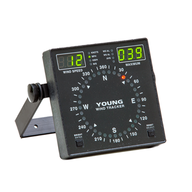 YOUNG 06201型風(fēng)力跟蹤器是一款緊湊型風(fēng)速和風(fēng)向顯示器,可用于廣泛的應(yīng)用。與大多數(shù)YOUNG風(fēng)傳感器兼容(不包括電壓輸出型號),它將顯示瞬時(shí)風(fēng)速和極大陣風(fēng)值,可選擇mph, m/s, km/hr, 或knots。風(fēng)向顯示在彩色LED的圓形羅盤圖案上,顯示電流方向和可變性。前面板控制允許亮度調(diào)整和極大風(fēng)速值的重置。電壓輸出(0-5 VDC代表0-100 m/s和0-360度)為標(biāo)準(zhǔn)輸出。所含雙電源與110 VAC或230 VAC電源電壓兼容。可以啟用“風(fēng)跟蹤器”來顯示平均值。警報(bào)繼電器連接可用于風(fēng)速和風(fēng)向。單個(gè)傳感器可以使用多個(gè)顯示器。該顯示器非常緊湊,便于安裝在垂直艙壁或墻面上。