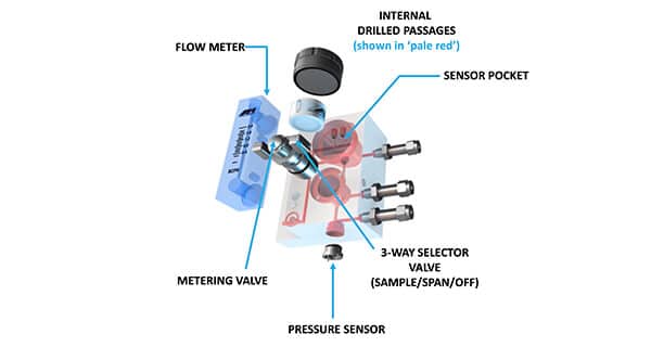 | 消除器電池組 | 包含一個完整的樣品系統,所有組件,包括流量計、計量閥、壓力傳感器和3路選擇(樣品/跨度/關閉)閥,完全集成 |