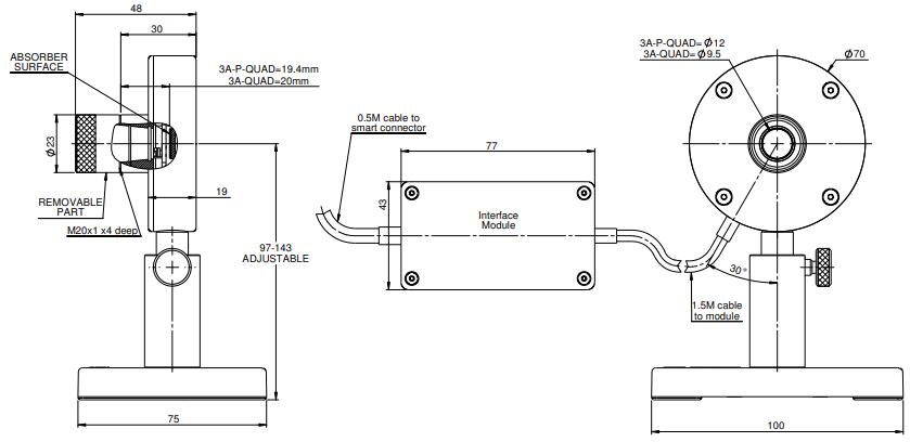 BeamTrack 系列 3A-QUAD 激光測量傳感器測量激光束位置以及功率和能量。它有一個 9.5mm 的孔徑,可以測量光束位置到 0.15mm 的精度。它測量 100μW 至 3W 的功率和 20μJ 至 2J 的能量。該傳感器配有一根 1.5m 電纜,可將其連接到電子盒,另一根 0.5m 電纜可將電子盒連接到儀表或 PC 接口。