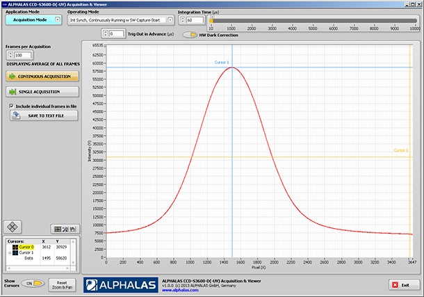 | 包括采集和瀏覽軟件 | 是的,免費! 支持Microsoft Windows。 獨立運行,不需要LabVIEW許可證 | 輕松控制CCD攝像機和所有設置,獲取并保存CCD數據。 輕松加載和查看保存的數據,包括 平均和單個幀。 工具包括縮放,平移,光標和數據導出。 |