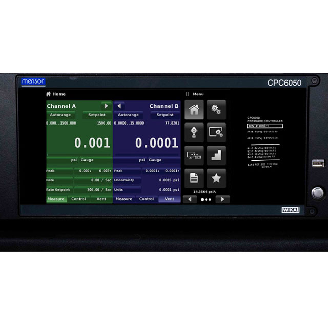 高度可配置的壓力控制器型號 CPC6050 模塊化壓力控制器提供很大的靈活性更好地滿足客戶的要求。壓力控制器至多可以有兩個獨立的壓力調節(jié)通道,可以同時運行。每個通道至多可以有兩個傳感器。該儀器還可以有一個可選的氣壓參考,用于表壓或絕對壓力仿真。該儀器可以指定為臺式或 19" 機架安裝套件。