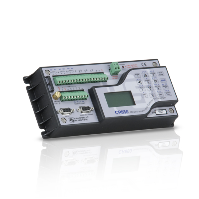 CR850包含封裝在塑料殼內的帶一體式接線面板的測量控制模塊、16鍵的鍵盤、以及可顯示8行21字符數值顯示(或64x128像素繪圖)的LCD顯示屏。支持自定義菜單,方便用戶通過簡單切換或選取列表,來初始化數據采集器程序的選項設置功能。一體式的鍵盤和顯示器用于啟動數據采集器工作程序,初始化數據傳輸,顯示數據。