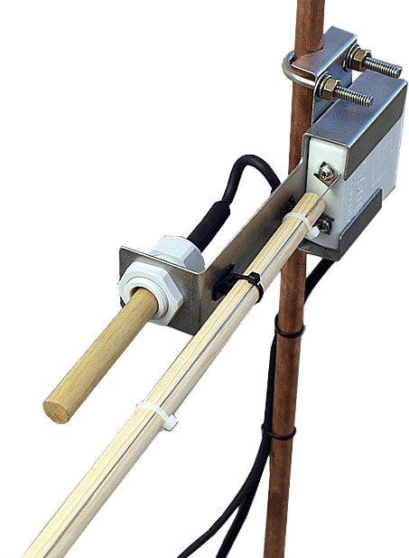 CS506報告較小直徑(10-小時)的森林可燃物的火險狀態,用單位質量的含水量(1%=1 g)來表示。它含有用環氧樹脂封裝的電子套件,采集時域反射技術(TDR)來檢測26601 10-小時 可燃物含水量仿真木銷中的含水量。傳感器產生 ±0.7-Vdc 的方波,由Campbell Scientific數據采集器的模擬通道或脈沖通道來讀取。數據采集器再將頻率通過二次校準曲線轉換成可燃物含水量百分比。