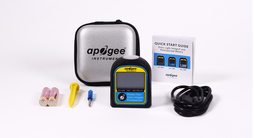 DLI-500 全光譜儀是2022 年的新產品,是一款優雅、易于使用的設備,用于抽查光合有效輻射(PAR;400-700 nm)水平并測量每日光積分( DLI) 和所有光源下的光周期,且在所有光源下都準確。DLI是指24小時內入射在一個平面上的PAR或擴展PAR(ePAR)的總量,單位為每天每平方米的摩爾數。光周期是 24 小時內 PAR 或 ePAR 入射的總時間,以小時 (h) 為單位表示。PAR、DLI 和光周期影響植物的生長和發育,通常在溫室和生長室中測量它們以幫助進行光照管理和決策。