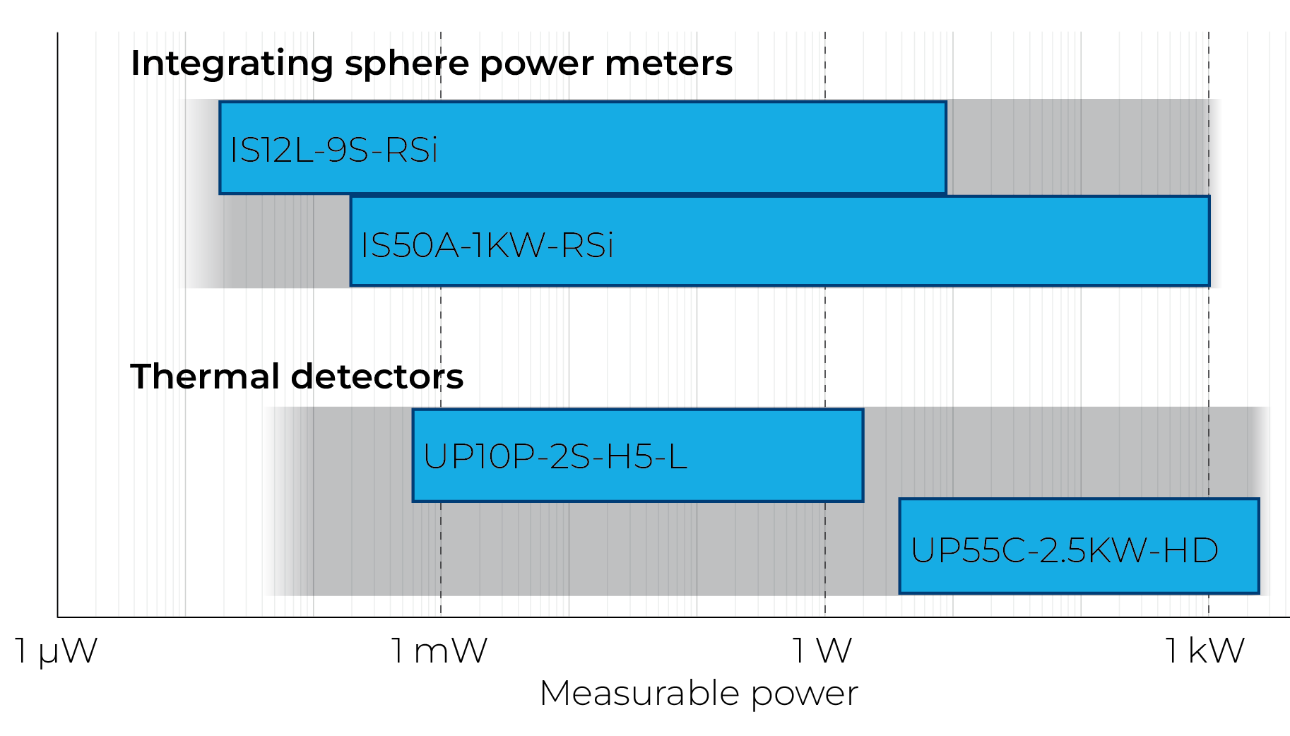 由于采用了基于光電二極管的傳感器,IS 系列功率計的測量時間不到 200 毫秒,比熱檢測器快數十倍。