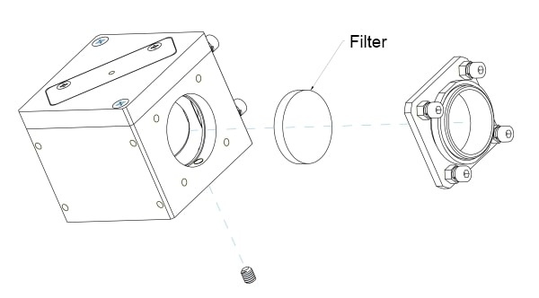 每個輸入端口都集成了一個濾光片井(見下圖),因此可以在 LED 光源和分束器之間插入 φ1“ 或 φ25mm 的濾光片。窄帶濾光片和偏振片可用于清理 LED 光譜或改變輸出光束的偏振狀態(tài)。以下是二向色鏡/分光鏡安裝到光束合光鏡立方體中的尺寸要求: