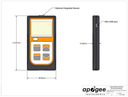 MP-100 的手持式儀表頂部集成了一個(gè)傳感器,以 W m -2為單位顯示和存儲測量值。典型應(yīng)用包括農(nóng)業(yè)、生態(tài)和水文天氣網(wǎng)絡(luò)和太陽能電池板陣列中的短波輻射測量。