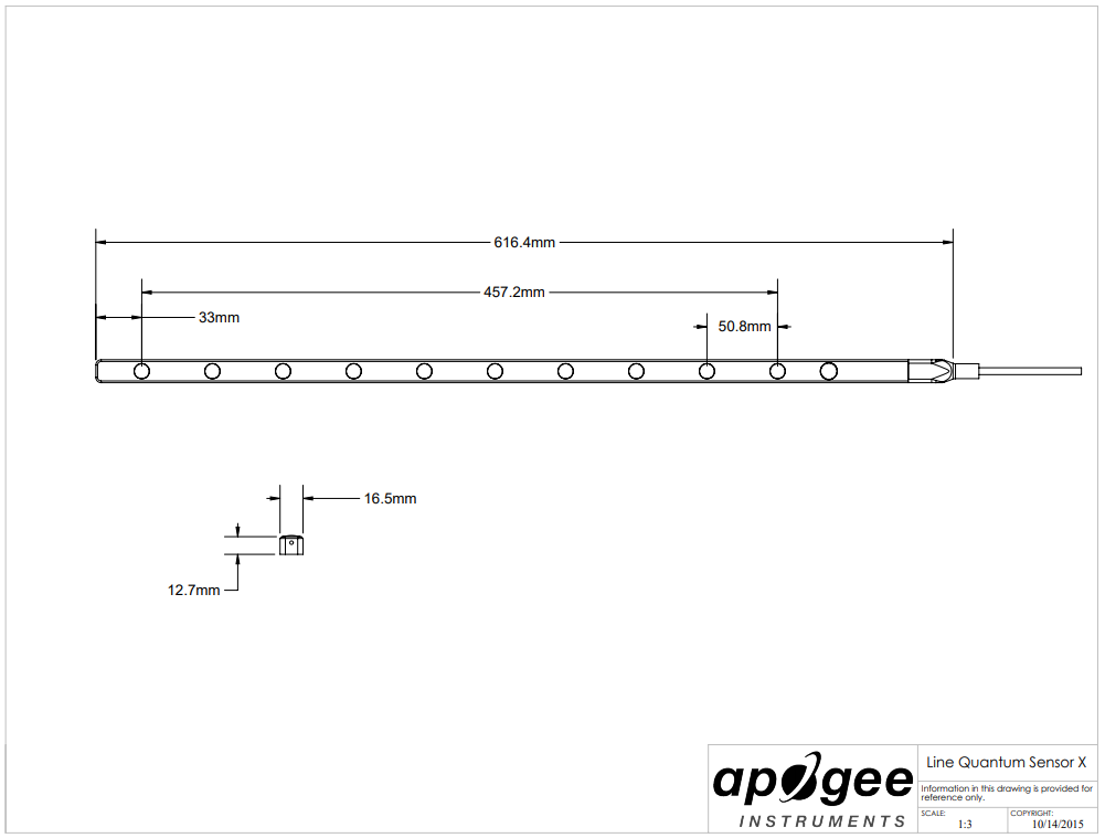 遠地點線量子傳感器測量光合有效輻射 (PAR) 的空間平均值。MQ-301X 有一個單獨的傳感器條,其中有 10 個傳感器通過電纜連接到手持式儀表。傳感器外殼設計采用集成氣泡水平儀,完全密封,使傳感器不受天氣影響。典型應用包括室外環境、溫室和生長室中植物冠層的光合光子通量密度 (PPFD) 測量,以及相同環境中的反射或冠層下(透射)PPFD 測量。