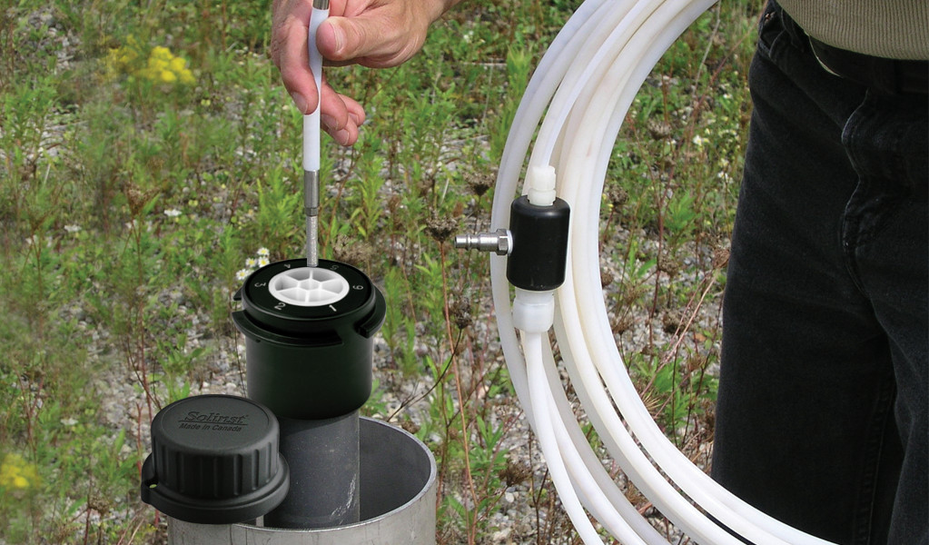 微型雙閥泵具有非常小和靈活的設計。它是一種氣動泵,使用同軸聚四氟乙烯管提供高質量的樣品。直徑為3/8“(10 mm),足夠小,可以安裝在內徑為1/2”(13 mm)的管道中,如Waterloo多級系統5/8“開口管,以及Solinst 403型CMT多級系統的通道中。非常適合狹窄應用中的低流量地下水監測。