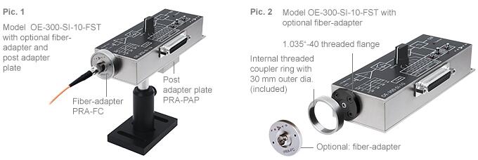 所有 OE-300 型號都可以通過可選的接桿支架適配器類型 PRA-PAP 輕松安裝到標(biāo)準(zhǔn) M4 和 8-32 UNC 螺紋光學(xué)接桿支架上。