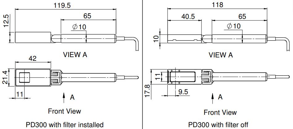 PD300 是一款通用光電二極管激光測量傳感器,具有旋轉安裝和可拆卸濾光片,孔徑為 10x10mm。不帶濾光片時,其光譜范圍為350-1100nm,功率測量范圍為500pW-30mW。帶濾光片的光譜范圍為 430nm - 1100nm,功率范圍為 2μW - 300mW。它具有 Ophir 獨有的自動背景扣除功能。該傳感器帶有一根 1.5 米長的電纜,用于連接到儀表或 PC 接口。