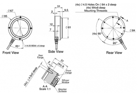 PE80BF-DIF-C是一種熱釋電能量計(jì),帶有聚光束漫射器。孔徑為67mm,可以測(cè)量4mJ至40J的能量。它可在不超過(guò)250Hz的重復(fù)頻率下工作,覆蓋0.19-2.2,2.94μm的光譜范圍。探頭配有1.5米長(zhǎng)的標(biāo)準(zhǔn)電纜,用于連接儀表或PC適配器。