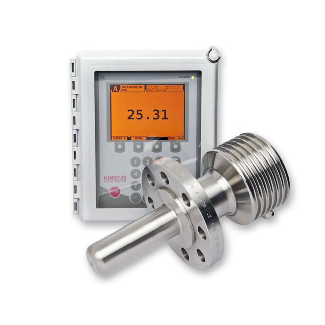 測量范圍涵蓋 0-100 %(按重量計)。精度通常為 ±0.1 % bw,測量自動進行溫度補償??梢耘渲玫蜐舛群透邼舛染瘓?。由于采用數字傳感技術,即使大量的懸浮物、氣泡或顏色變化也不會影響測量或準確性。