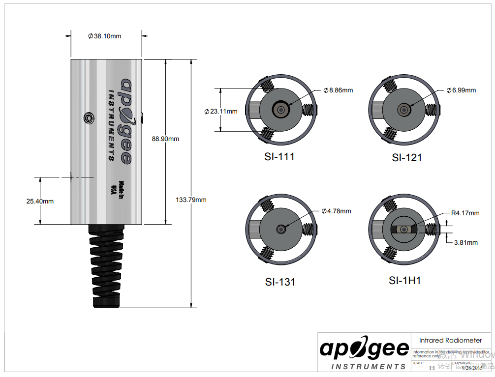 SIF-121 是一種快速響應型紅外輻射計,響應時間為0.2秒。模擬傳感器是非放大的,具有電壓輸出和高質量的電纜終端,在預罐裝尾纖引線,方便連接到數據記錄器和控制器。傳感器具有18°半角視場。典型的應用包括用于植物水分狀態估計的植物冠層溫度測量,表型分析,表型組學,用于確定結冰條件的路面溫度測量,以及用于能量平衡研究的陸地表面(土壤,植被,水,雪)溫度測量。傳感器包括IP68 不銹鋼電纜連接器30厘米的頭部,以簡化傳感器的拆卸和更換維護和重新校準。SIF-121-SS設計用于安裝Apogee AM-250商業安裝支架。