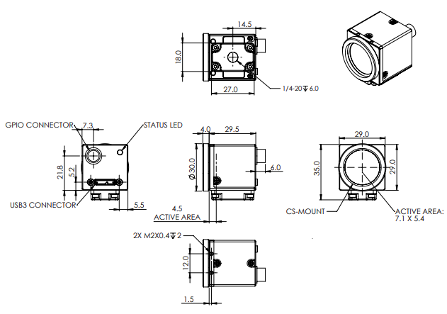 具有 60μm 有效像素間距的 5.3mm x 7.1mm 有效區域