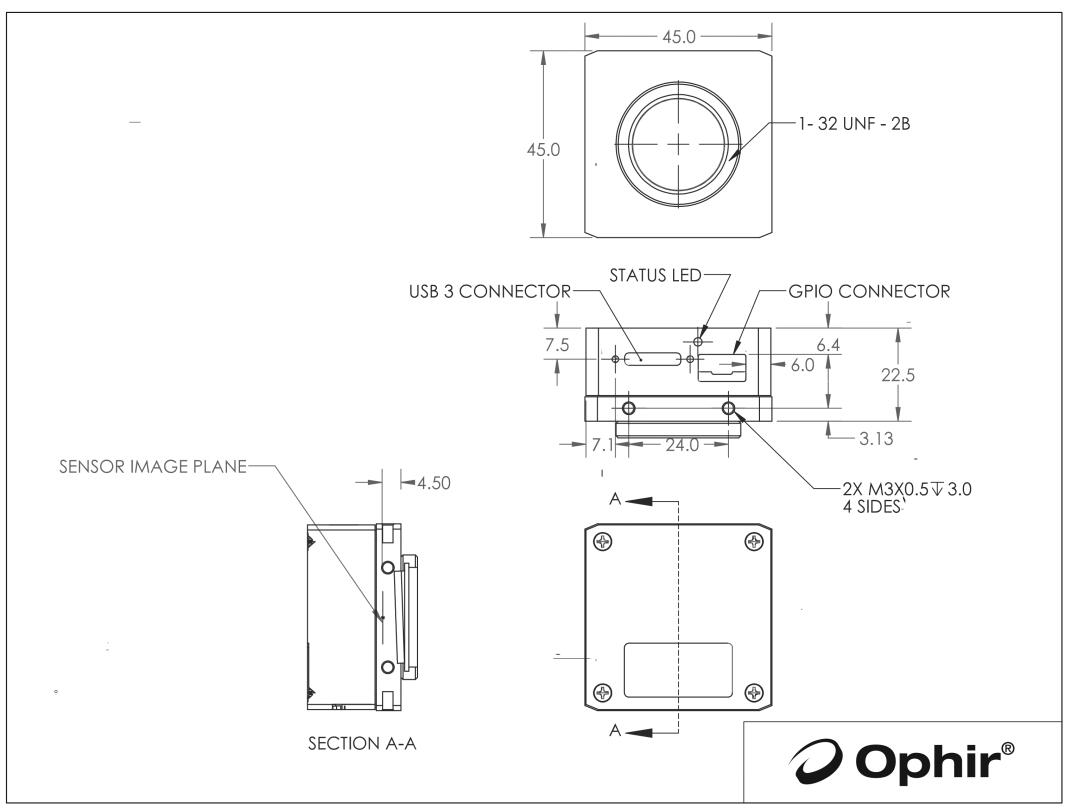 USB 3.0全局快門(mén)CMOS,高分辨率相機(jī),具有更高的精度,尤其是在近紅外和Nd:YAG波長(zhǎng)下,使用BeamGage的“Blooming Correction”算法。緊湊的方形設(shè)計(jì)增加了設(shè)置的多功能性。