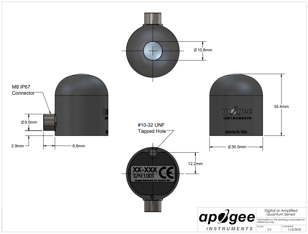 SQ-421X-SS是一種使用SDI-12通信協(xié)議的數(shù)字傳感器。該傳感器根據(jù)陽光進(jìn)行校準(zhǔn),并具有自動(dòng)應(yīng)用浸沒效應(yīng)校正因子進(jìn)行水下測(cè)量的命令。該傳感器具有堅(jiān)固耐用、自清潔的傳感器外殼設(shè)計(jì),高質(zhì)量的電纜終端采用預(yù)鍍錫的辮子式引線,方便連接到數(shù)據(jù)記錄儀和控制器。典型的應(yīng)用包括在室外環(huán)境、溫室和生長室中對(duì)植物冠層進(jìn)行PPFD(光合光子通量密度)測(cè)量,以及在相同環(huán)境中反射或冠層下(傳輸)PPFD測(cè)量。量子傳感器也被用于測(cè)量水生環(huán)境中的PAR(光合有效輻射)/PPFD,包括生長珊瑚的鹽水水族館。