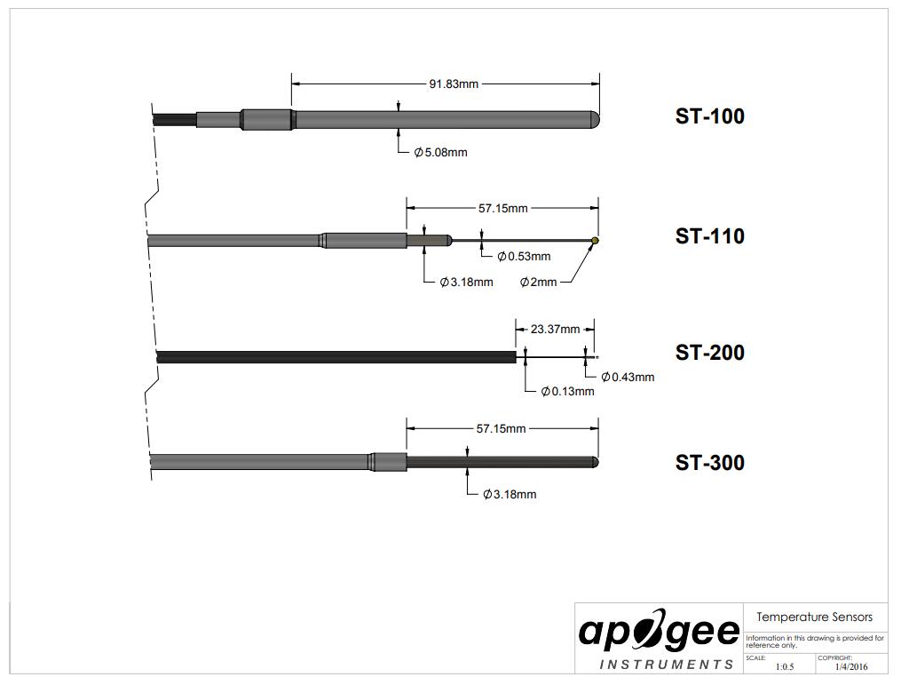 ST-300 是一款高精度 PRT(鉑電阻溫度計),(1/10 DIN) 旨在極大限度地減少太陽能負載和熱質量。PRT 后面的電纜上使用白色熱縮管以減少太陽能負載。PRT 護套尺寸為直徑 3.18 毫米和長度 63.5 毫米,很大限度地減少了熱質量。