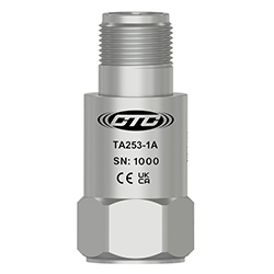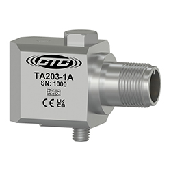 雙輸出傳感器,溫度和加速度,M8X1.25固定螺栓,側(cè)出3針連接器,100 MV/G,10 MV/°C,±10%