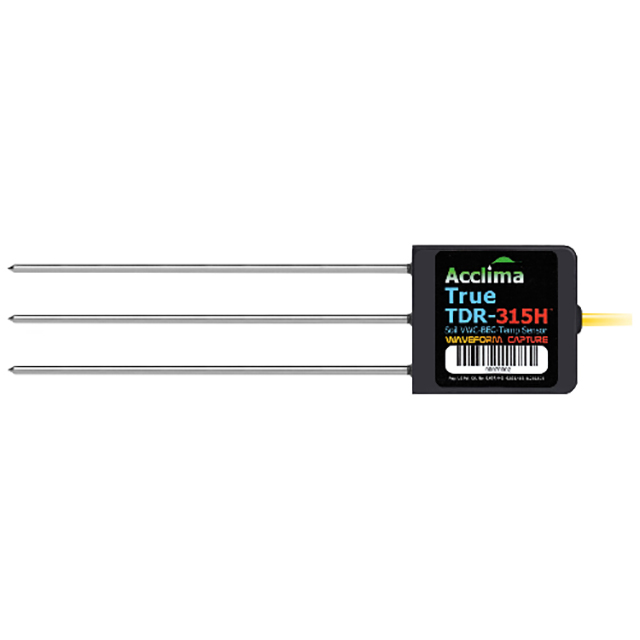 TDR-315H 是以前的 Acclima TDR-315 和 TDR-315L 土壤濕度傳感器的替代品。它與這些傳感器完全兼容,但包含多項改進。它是一個完整的集成時域反射計,結合了快速波形生成和數字化功能以及精確的 5 皮秒分辨率時基和高度復雜的波形數字化和分析固件,可提供土壤傳播波形的真實時域分析。其形狀因數專為較淺的水平安裝而設計,在這種情況下,它被迫進入已挖掘到所需測量深度的溝槽的側壁。