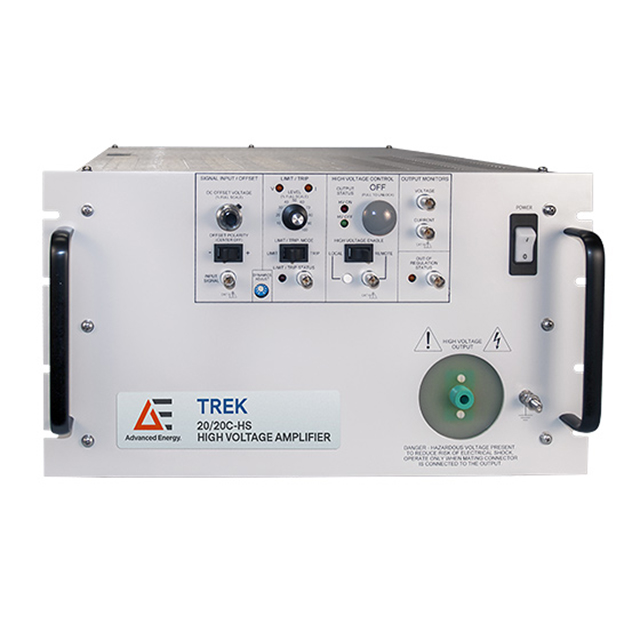 直流穩定 Trek 20/20C 高壓功率放大器具有四象限有源輸出級,這對于實現準確的輸出響應和高轉換速率至關重要。它在整個輸出電壓范圍內將電流吸收或提供給電抗或電阻負載。Trek 20/20C 用于眾多工業和研究應用,例如材料表征、鐵電體和大氣等離子體。Advanced Energy 的 Trek 20/20C-HS 高壓放大器提供三倍的峰值電流、更高的轉換速率和更大的帶寬。