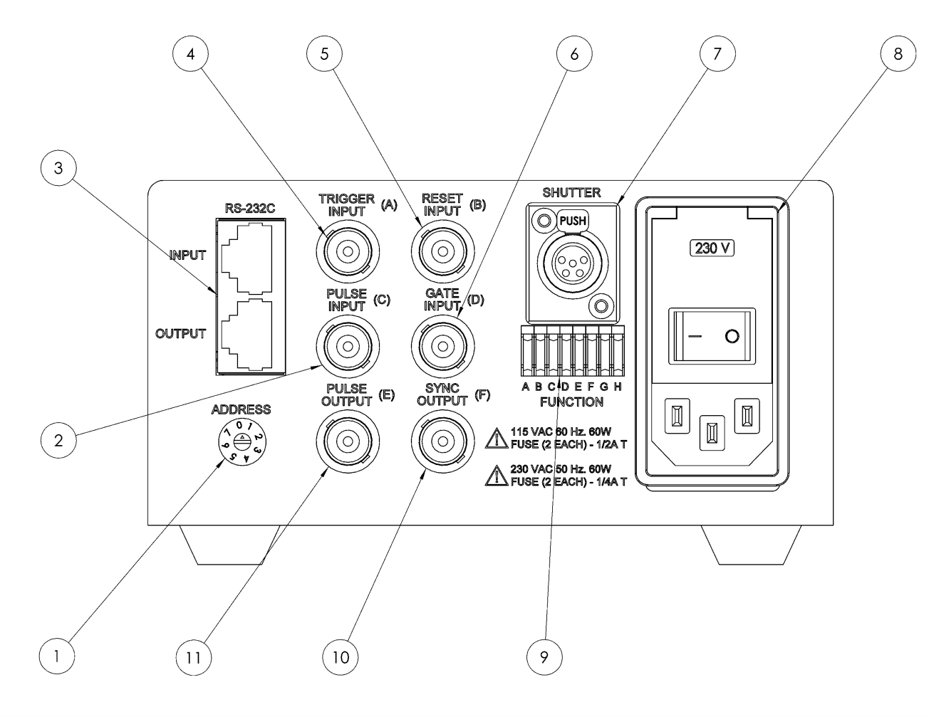 | 地址選擇開關 (1) | 選擇設備的有效 RS-232C 地址。 |