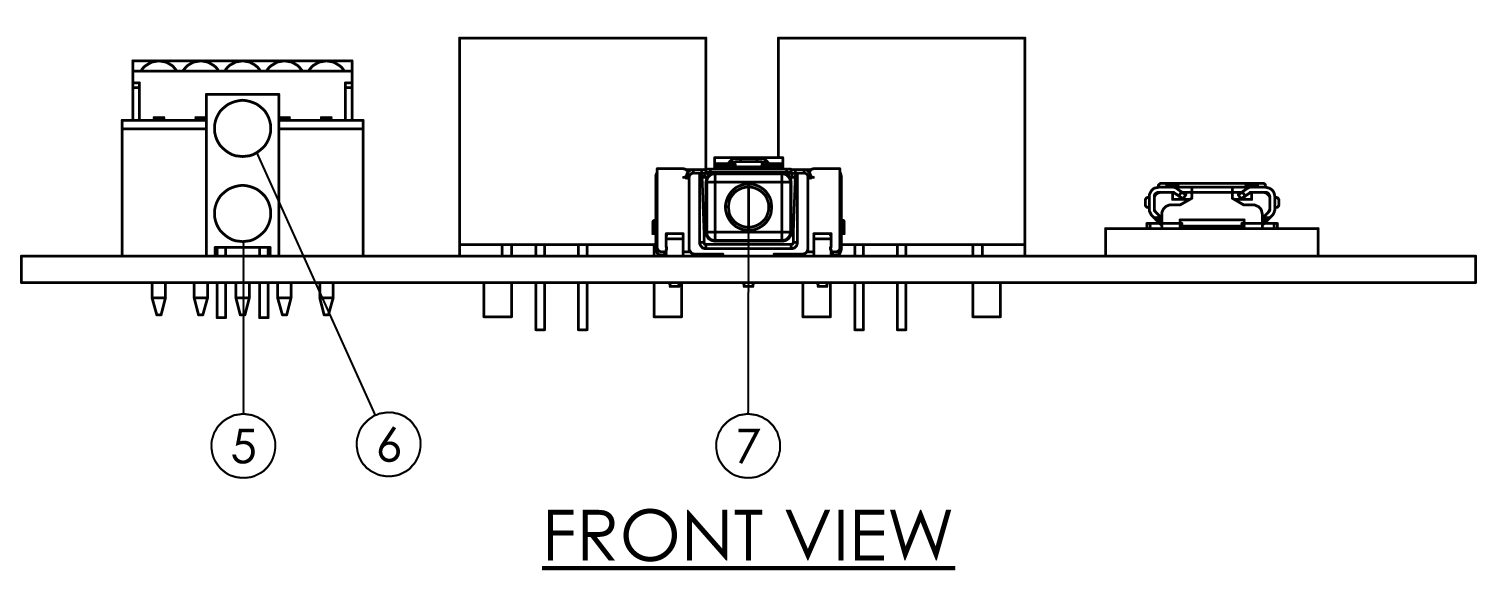 | 5 針可插拔彈簧端子 (4) | 用于快門終止和同步系統接口。FS 系列百葉窗的飛線可以直接連接到該端子(無需適配器)。 |