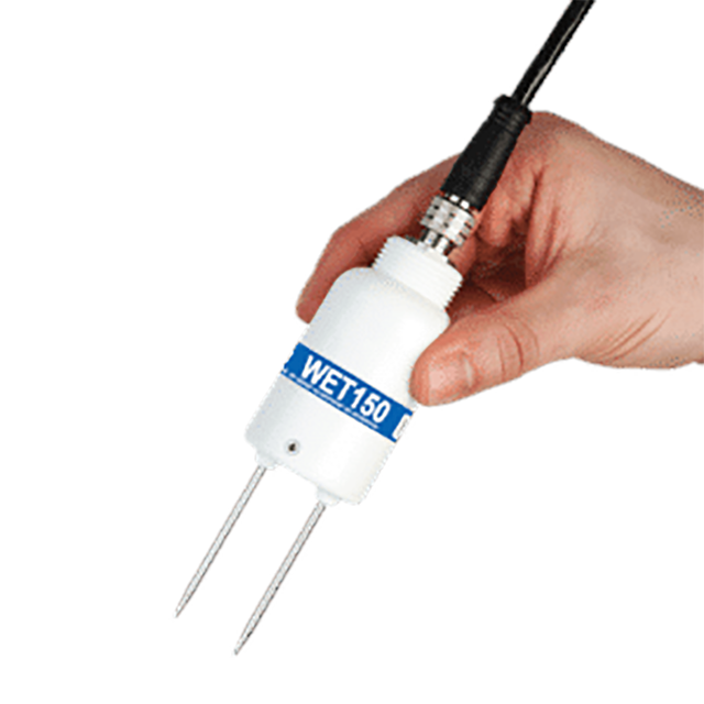 WET150 是一款雙用途土壤濕度傳感器。它可以安裝在土壤或基質(zhì)中并連接到 SDI-12 主設(shè)備(例如數(shù)據(jù)記錄器)以提供長期濕度、溫度和 EC 數(shù)據(jù)。或者,它可以以套件形式用作連接到 WET150