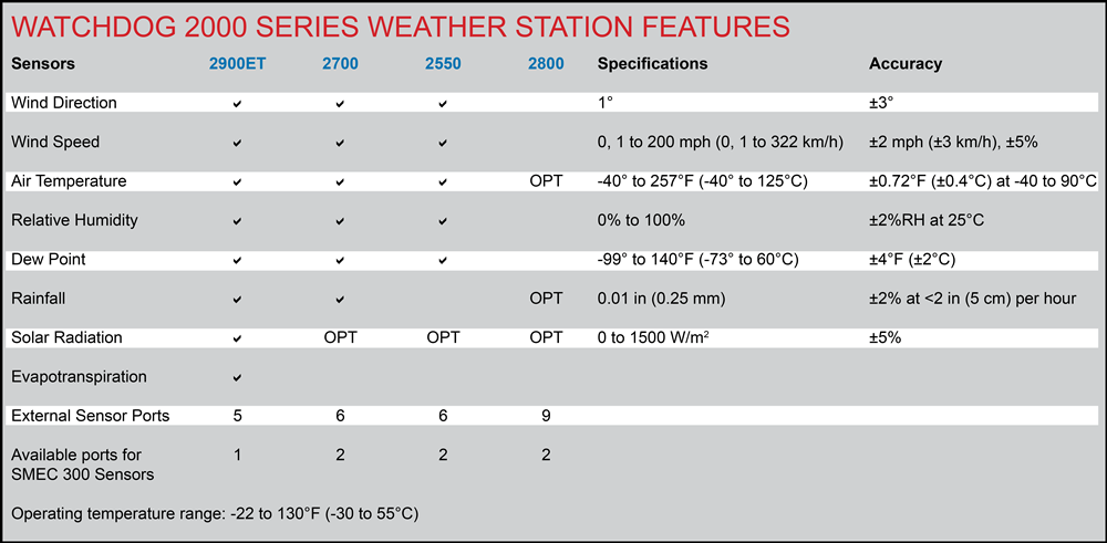 WatchDog 2800 工作站非常適合需要多個(gè)傳感器測(cè)量溫度、土壤濕度、作物冠層光照或葉片濕度數(shù)據(jù)的情況。通過選擇多達(dá) 8 個(gè)插入式傳感器以及 1 個(gè)可選的雨量傳感器,根據(jù)您的應(yīng)用定制電臺(tái)。2800 Station 具有與其他 WatchDog Station 相同的內(nèi)存、電源和 LCD,并接受相同的通信設(shè)備和傳感器。需要 SpecWare Pro 軟件。