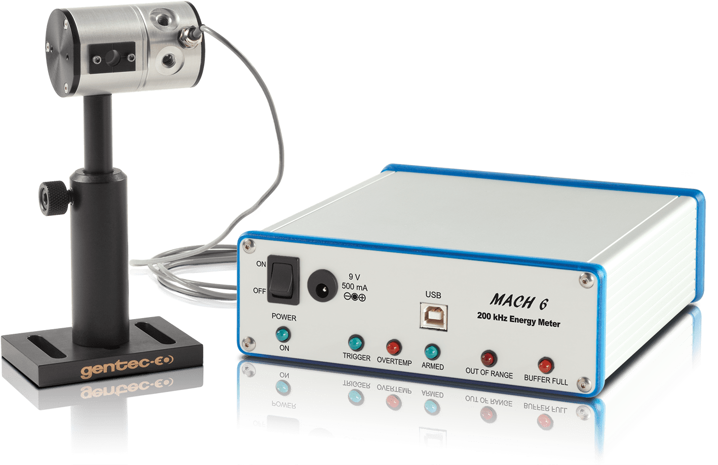 MACH 6 焦耳計可用于測量每個脈沖(頻率最高達 200 kHz),具備 12 位數的測試精度,可實時采集多達 400 萬個脈沖的數據。該焦耳計為適配我們快速能量探測器而設計,這些探測器包括硅探測器、砷化銦鎵探測器以及熱釋電探測器。其測量范圍涵蓋皮焦(pJ)至毫焦(mJ),波長范圍從 0.35 微米至 2.5 微米。若搭配 M6-Si 探測器和 M5-UC-QED 附件使用,您還能在 266 納米波長下進行測量。