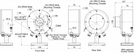 | Backscattered Power | ~3.5% without Scatter Shield, ~1% with Scatter Shield |