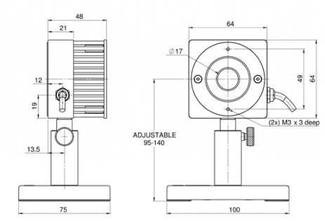 The 30(150)A-HE-17 is thermal power/energy laser measurement sensor with high damage threshold for pulsed lasers. It has a 17mm aperture and can measure from 50mW to 30W continuously and to 150W intermittently. It can measure energy from 60mJ to 200J. Its HE absorber has a damage threshold of up to 5J/cm2 and with some gaps covers the spectral range from 0.19 to 2.94μm. The sensor comes with a standard 1.5 meter cable for connecting to a meter or PC interface.