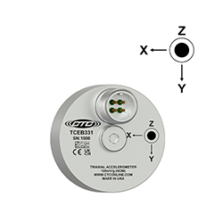 Low Cost Triaxial Accelerometer, Top Exit 4 Pin Mini-MIL Connector, Follows Cartesian Phase Coordinate System, for Modal & ODS Analysis, 100 mV/g, ±15%