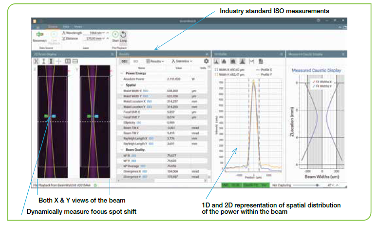 Measures all the critical laser beam parameters of the focused beam up to 9999 W power (up to 30 kW on request). Measured laser parameters include: