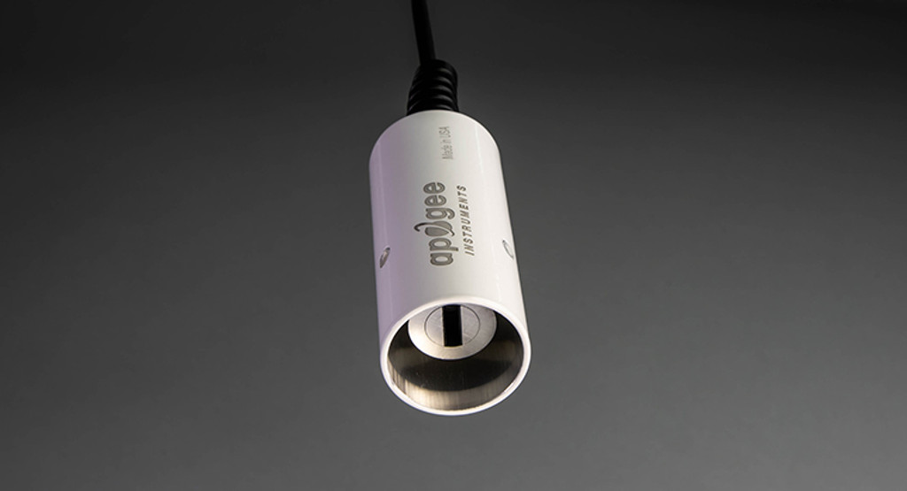The SIF-1H1-SS is a fast response model infrared radiometer with a 0.2 second response time. The analog sensor is un-amplified and has a voltage output and high-quality cable terminating in pre-tinned pigtail leads for easy connection to dataloggers and controllers. The unique geometry of the sensor gives a wide 32° half-angle field of view in the horizontal direction with a 13° half-angle field of view in the vertical direction. This enables the user to mount the sensor at shallower angles without seeing above the horizon while maximizing the area measured. Typical applications include plant canopy temperature measurement for use in plant water status estimation, phenotyping, phenomics, road surface temperature measurement of determination of icing conditions, and terrestrial surface (soil, vegetation, water, snow) temperature measurement in energy balance studies. Sensor includes IP68 marine-grade stainless-steel cable connector 30 cm from head to simplify sensor removal and replacement for maintenance and recalibration. The SIF-1H1-SS is designed to be mounted with an Apogee AM-250 commercial-grade mounting bracket.