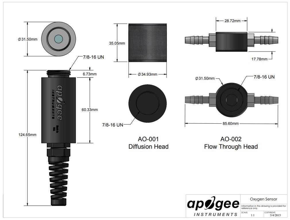 The SO-110 has a standard response time of 60 seconds, is designed for use in soil applications, and has high-quality cable terminating in pre-tinned pigtail leads for easy connection to dataloggers and controllers. It comes with a thermistor temperature sensor to correct for temperature changes and a restive heater to raise the temperature of the membrane approximately two degrees above ambient temperature to keep condensation from occurring on the Teflon membrane and blocking the diffusion path of the sensor. Typical applications include measurement of O2 in laboratory experiments, monitoring gaseous O2 in indoor environments for climate control, monitoring of O2 levels in compost piles and mine sailings, monitoring redox potential in soils, and determination of respiration rates through measurement of O2 consumption in sealed chambers or measurement of O2 gradients in soil/porous media.