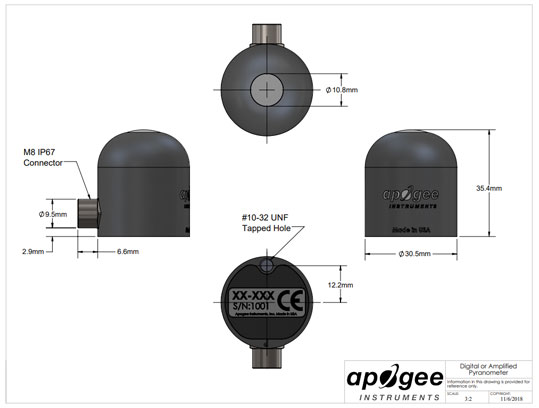 | Calibration Factor | 125 W mˉ2 per mA (reciprocal of sensitivity) with an offset of 4 mA |