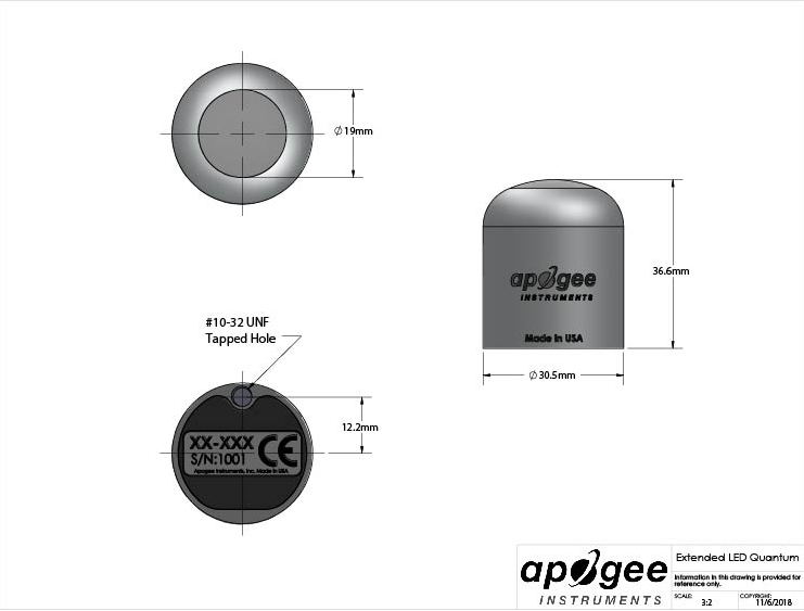 | Calibration Factor | 100 μmol mˉ2 sˉ1 per mV |